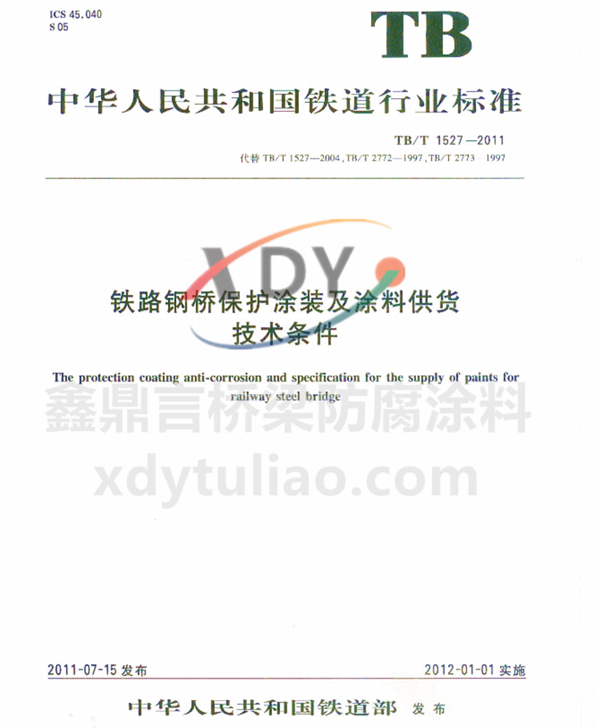 TB/T 1527-2011鐵路鋼橋保護涂裝及涂料供貨技術(shù)條件 華人民共和國鐵道行業(yè)標準 TB/T 1527-2011代替TB/T 1527-2004、TB/T 2772-1997、TB/T 2773-1997 鐵路鋼橋保護涂裝及涂料供貨技術(shù)條件 The protection coating anti-corrosion and specification for the supply of pa