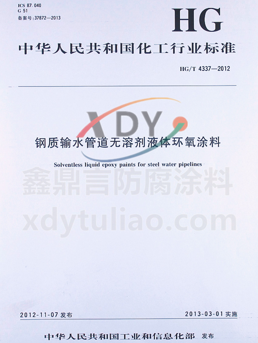 HG/T 4337-2012鋼質(zhì)輸水管道無溶劑液體環(huán)氧涂料標準