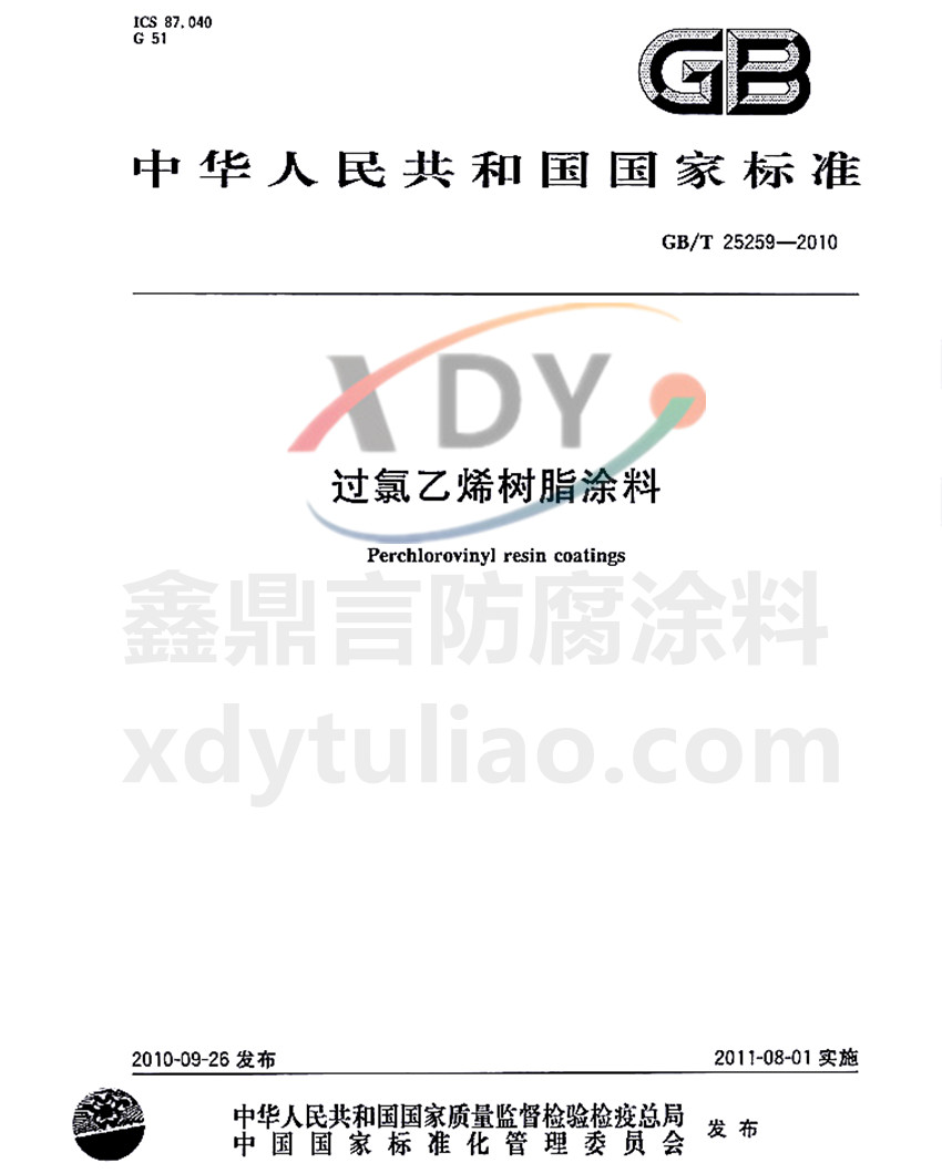 過氯乙烯樹脂涂料國家標準GB/T25259-2010