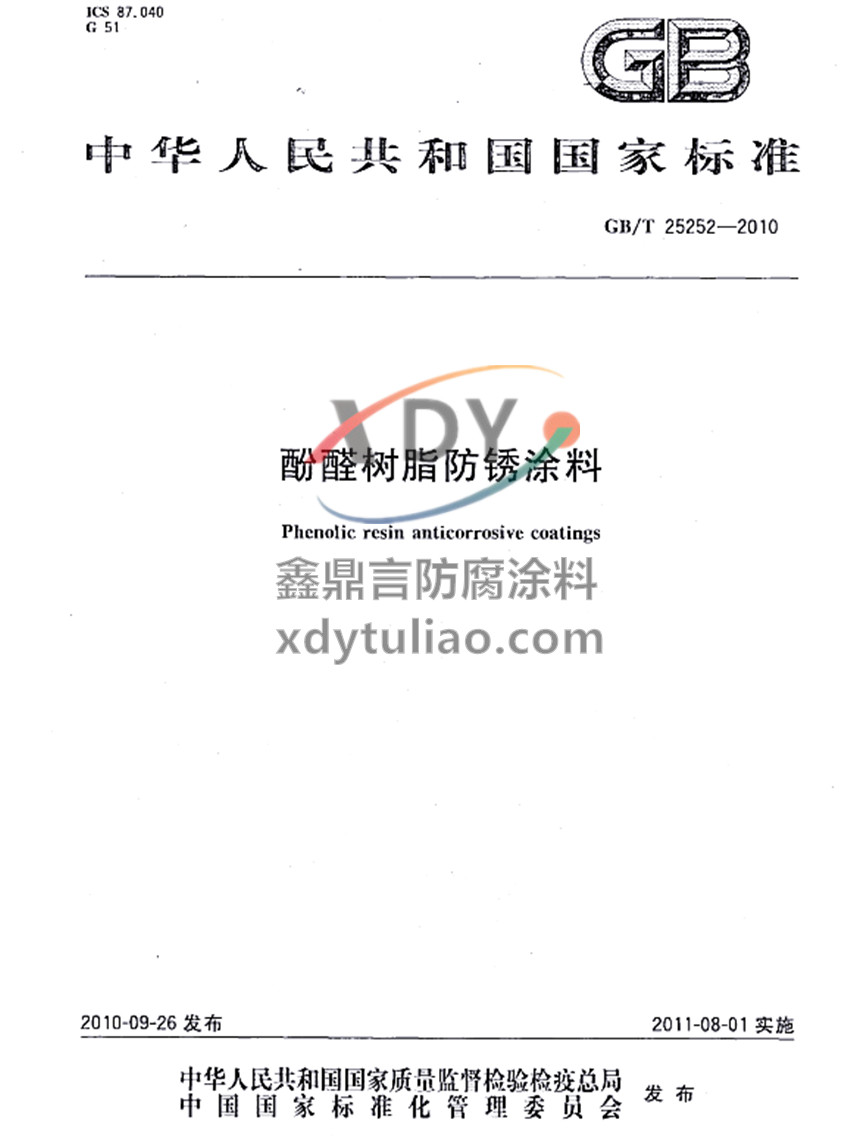 GB/T 25253-2010酚醛樹脂涂料 ICS 87.040 G 51 GB 中華人民共和國國家標準 GB/T 25253-2010 酚醛樹脂涂料標準Phenolic resin coatings 2010-09-26發(fā)布 2011-08-01實施 中華人民共和國國家質量監(jiān)督檢驗檢疫總局 中國國家標準化管理委員會 發(fā)布 本標準規(guī)定了酚醛樹脂涂料的分類、要求、試驗方法、檢驗規(guī)則、標志、包裝和貯存