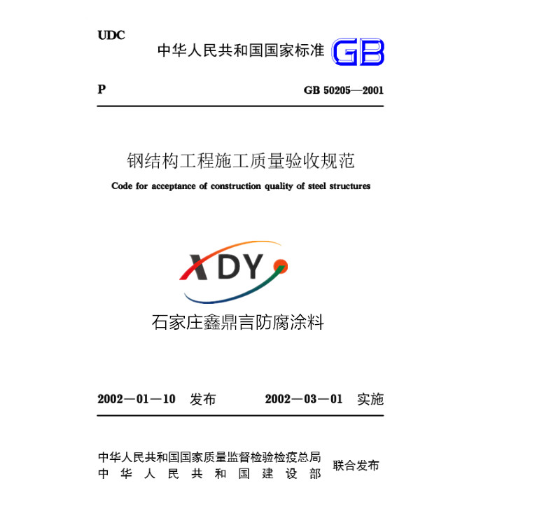 本文介紹了GB50205-2001鋼結(jié)構(gòu)工程施工質(zhì)量驗(yàn)收規(guī)范對(duì)于鋼結(jié)構(gòu)防腐涂料涂裝的表面處理要求,各類防銹漆、底漆對(duì)應(yīng)的最低除銹等級(jí)及防腐涂料的涂層厚度、驗(yàn)收標(biāo)準(zhǔn)。專業(yè)的XDY鋼結(jié)構(gòu)防腐漆生產(chǎn)廠家石家莊博凱防腐涂料廠為您提供質(zhì)量?jī)?yōu)異,價(jià)格合理的XDY鋼結(jié)構(gòu)防腐涂料全系列產(chǎn)品。