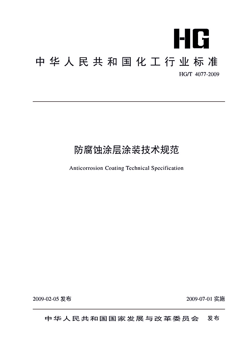 防腐蝕涂層涂裝技術(shù)規(guī)范標(biāo)準(zhǔn)HG/T 4077-2009